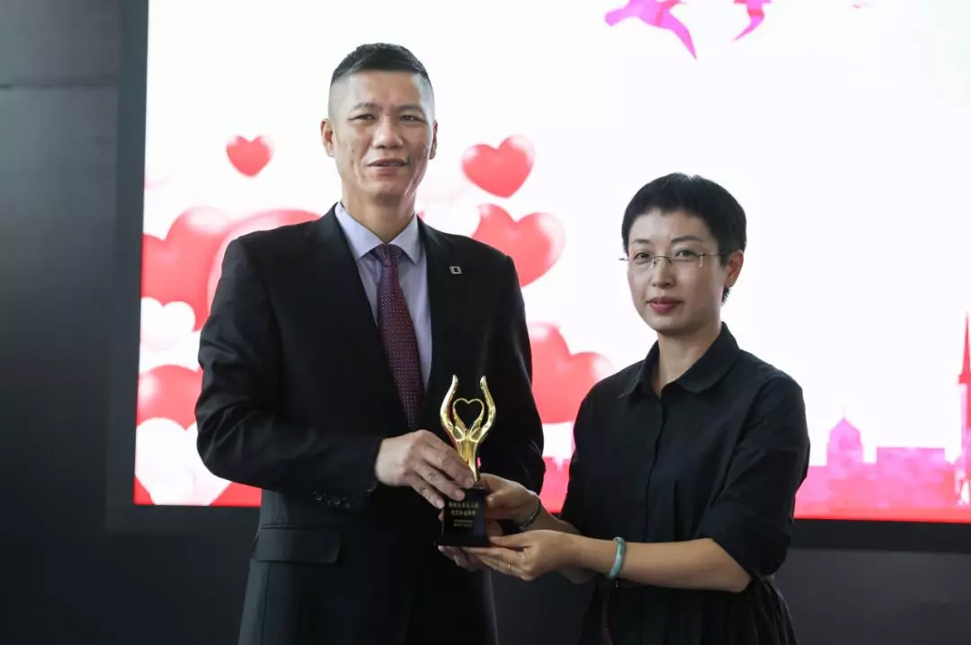 團(tuán)市委向歐龍集團(tuán)林建忠先生頒發(fā)愛(ài)心榮譽(yù)獎(jiǎng)杯