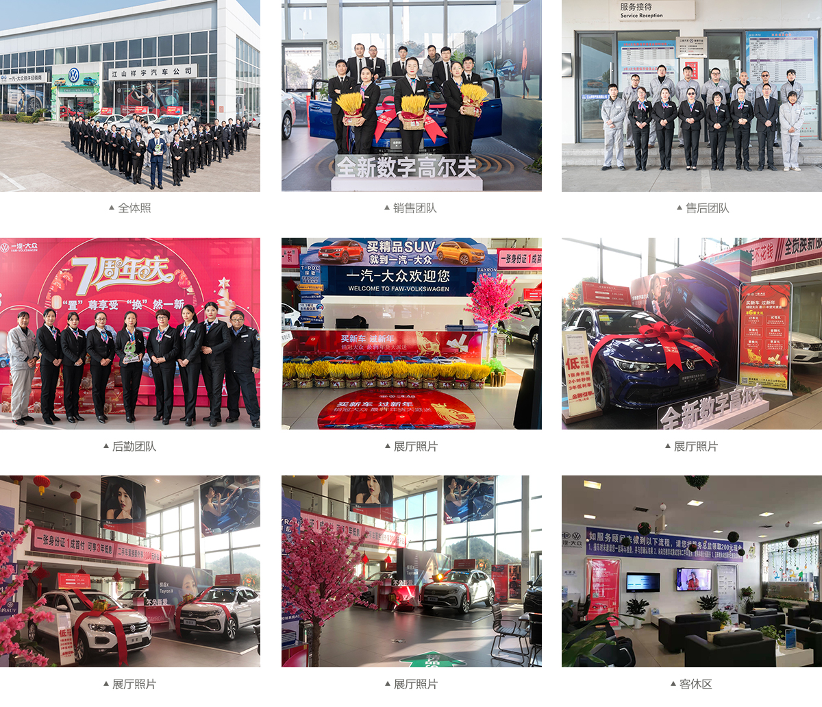 江山祥宇汽車有限公司主營車型有:CC、邁騰、高爾夫、速騰、寶來和SVU探影、探歌、探岳等一汽大眾授權產品,是目前江山市規模最大的汽車4S店。